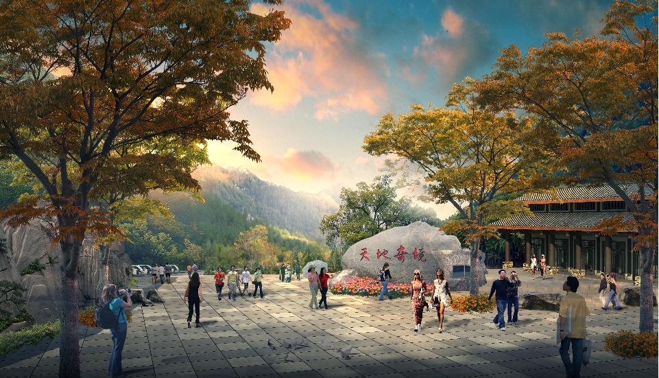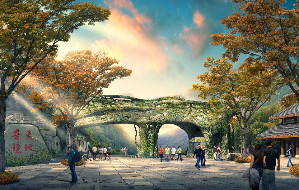 項目遵循“高起點、大視野、大旅游”原則,通過機構(gòu)科學、嚴謹?shù)淖稍兎椒ê凸ぞ哌M行整合、提煉和分析,提出了“生態(tài)優(yōu)先”、“國際發(fā)展”、“集群發(fā)展”、“項目拉動”、“和諧發(fā)展”五大策略,擬定“天坑地縫·天地人和”的主題定位。充分尊重現(xiàn)狀、利用現(xiàn)狀,采用軸線布局手法,形成本項目“一核一軸·三大片區(qū)”的布局結(jié)構(gòu)。