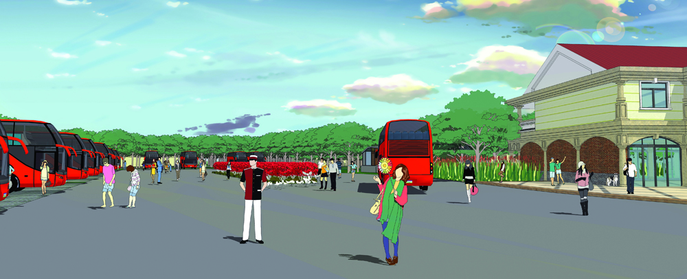 建筑設計主要采用簡歐風格,遵循“尊重自然、綠色生態、建筑風貌、景觀營造、可持續發展、低碳環保”的原則,布置在景區主干道右側和左側部分地塊,主要滿足大巴、中巴、小車、電瓶車以及回遷居民住宅。規劃區停車場設有四個車行主要出入口,其中兩個主要滿足停車場內部車輛進出,一個滿足電瓶車出入停車場,一個滿足回遷建筑出入。建筑前廣場主要考慮人流集散,后庭院主要突出景觀營造,通過對商業零售、回遷居住、景區服務、汽車維修等配套商業設施的建設滿足游客游覽需求。