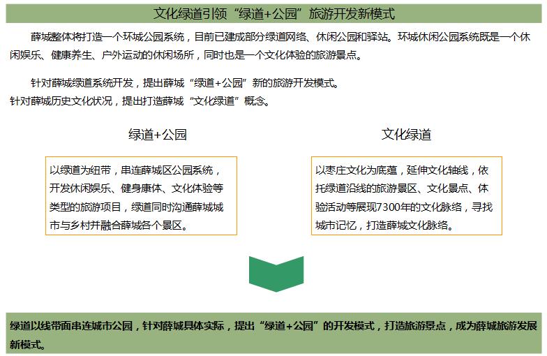 緊握新城建設新機遇,以文化綠道為基礎,以山水田園、城市森林、民俗村落為基底,以“始祖探源——棗莊七千年文化起點”為主題,開發(fā)休閑娛樂、鄉(xiāng)村旅游、文化體驗等類型的旅游項目,文化綠道溝通薛城城市與鄉(xiāng)村,與周邊旅游景點和公園組成城市休閑系統(tǒng),最終將打造成為: