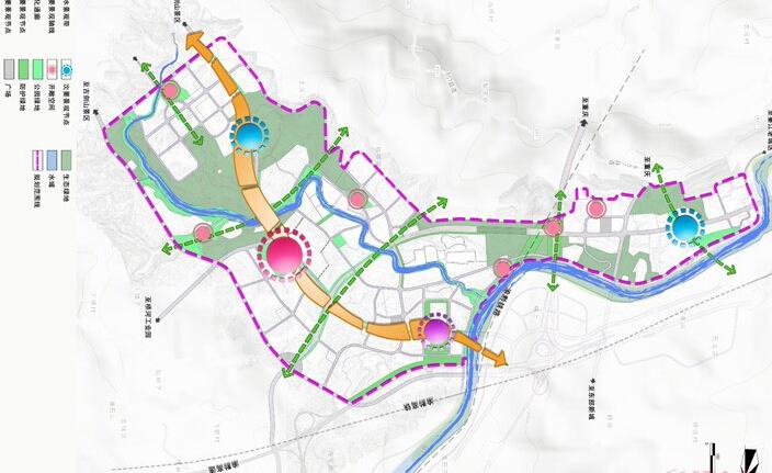 將有活力連續(xù)的街道、街區(qū)和公園用完善的步行系統(tǒng)和綠色廊道串聯(lián),加強山與城、水與城、山與水的對話,聯(lián)系起基地的生態(tài)要素,構(gòu)筑城市的生態(tài)基底。在這個基底之上,打造山環(huán)水繞的城市環(huán)境、高品質(zhì)社區(qū)、汽摩交易中心、社區(qū)生活中心,使基地成為未來城市的活力源泉、文化源泉、發(fā)展源泉和形象高地。