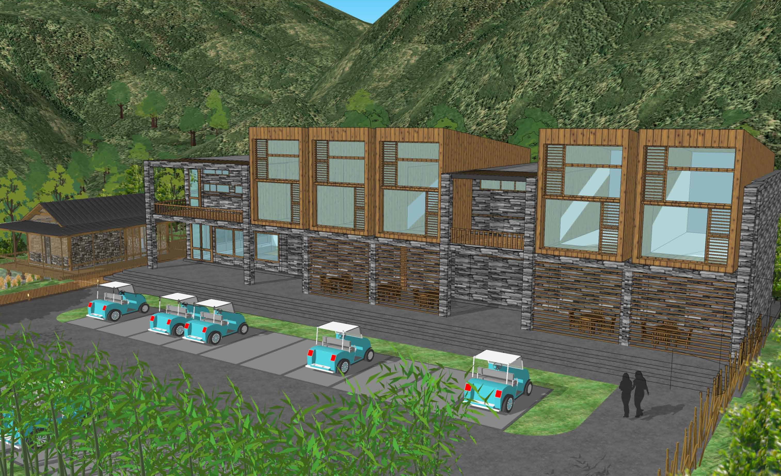 2、使用地域性自然材料。因地制宜,充分利用竹、木、石材等鄉(xiāng)土材料形成獨(dú)特的建筑風(fēng)格。